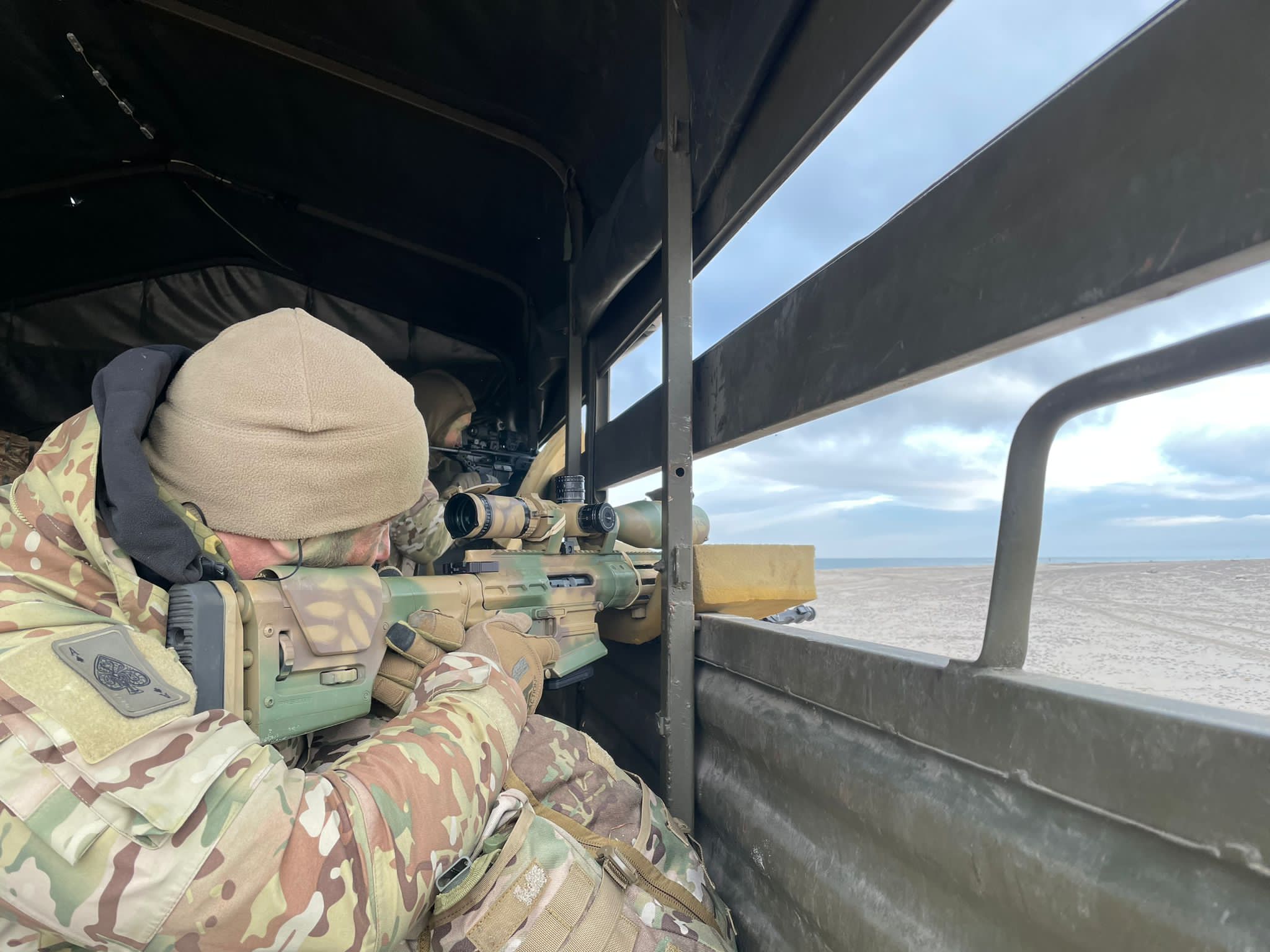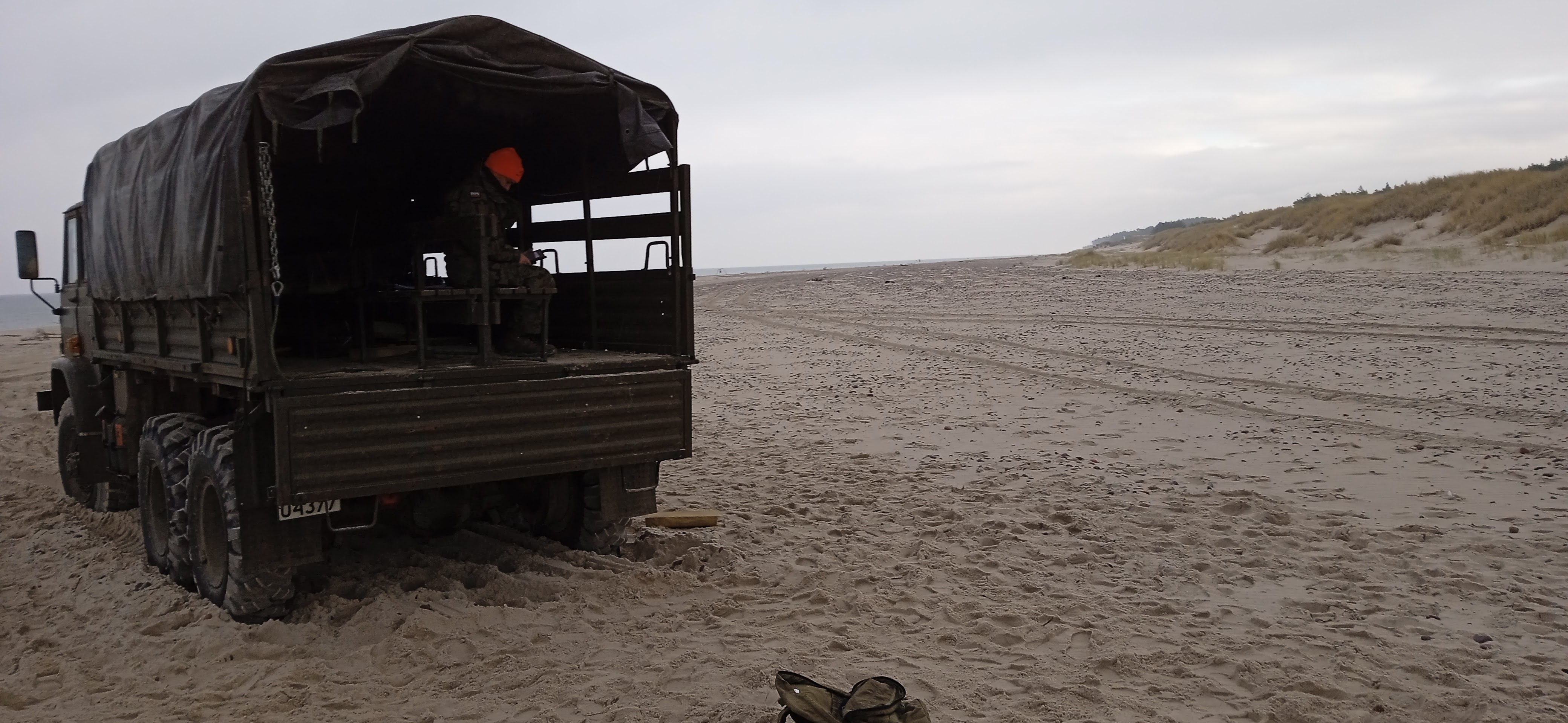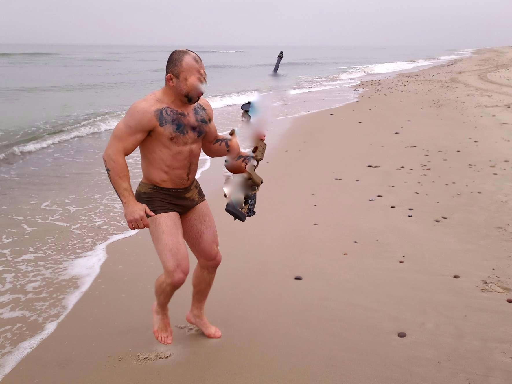 Pierwsza połowa tego dnia została poświęcona przystrzeliwaniu broni na plaży. Można to było zrobić na dystansach 100, 200, 300… aż do 600 metrów. Lekki wiatr i w miarę łaskawa aura nie przeszkadzały i poszło sprawnie, więc z kolegą wskoczyliśmy do wody na szybką sesję zdjęciową z morsowania. Okazało się to głupotą z naszej strony, bo z różnych względów wojskowych kąpiele chłodzące na poligonie są niezalecane. Ale fotki mamy ;)